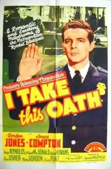 I Take This Oath is a 1940 American crime drama film directed by Sam Newfield under the pseudonym of Sherman Scott. Featuring Gordon Jones and Joyce Compton, it was the first release by Producers Releasing Corporation. In 1952, Pictorial Films reissued it for television showings as Police Rookie.