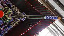 The bright colors, carvings and terra cotta tiles are all reflective of the Qing Dynasty. The architecture of this time period is filled with symbolism, as with most eras in Chinese architecture. Traditionally, wooden buildings were a place for the living to use while stone construction was used to house the dead (see ROM's Ming Tomb). The hall was built using the traditional methods and materials of Ancient Chinese wooden architecture.[1] The original palace is 5 bays wide and 4 bays deep. A "bay" is the space between each large support column. This unique construction allows for the columns to support the weight of the roof without the need for any load bearing walls.