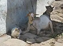 - 1 2 3 4 Feuerstein, N.; Terkel, Joseph (September 2008). "Interrelationships of dogs (Canis familiaris) and cats (Felis catus L.) living under the same roof". Applied Animal Behaviour Science. 113 (1–3): 150–165. doi:10.1016/j.applanim.2007.10.010. ISSN 0168-1591.
