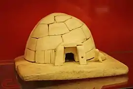 The museum contains some 1,300 items dating from the 1930s to the present day including sculptures,[5] artwork, tools used by the natives of this area of Canada. Some artifacts are made of stone, whale bone or ivory.[6] The museum has exhibits about the Dorset and Thule cultures.[7][8] Among the Inuit-related exhibits are antique weapons, hunting equipment and wooden kayaks designed to navigate the Arctic Ocean.[9][10] The museum also has exhibits on Arctic wildlife including animals such as Polar Bears, Muskox and Walrus.[11][12] The museum has a section of books about the animals that inhabit the Arctic.[13][14] The museum also preserves archaeological remains.[10]