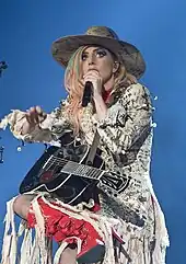 Journalists have described Joanne as a dance-pop,[41] soft rock[42] and Americana album,[43] with elements of country music.[44] According to Rolling Stone, Gaga "didn't give much thought to genre" while creating Joanne, which ranges "from the dance-rock of [its] lead single[,] 'Perfect Illusion'[,] to the introspective country songwriting of the title track". Gaga stated she professed a fascination with all aspects of country music, which in turn influenced the album.[45] In terms of production and composition, Joanne continued the "stripped-down" approach to music Gaga had taken following Artpop, emphasizing her vocals and the songwriting.[32] Gaga told Rolling Stone that the tracks consisted of "stories about my family, my sister, my father and his sister. My mom's family. My relationships with men, my failures".[27]