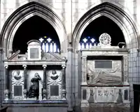 Peryam (right) and Tuckfield (left) monuments in Holy Cross Church, Crediton. The reclining figure at right is Sir William Peryam, of Little Fulford, John Peryam's elder brother. The female seated figure at left is Elizabeth Reynell, heiress of Little Fulford, granddaughter of John Peryam and wife of Thomas I Tuckfield