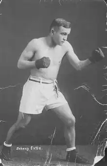 Johnny Ertle or Ertel (sometimes spelled Johnne) was a Hungarian born American boxer. Nicknamed "Kewpie" and "Little Dynamo", he was a disputed bantamweight world boxing champion from 1915 until 1918, when he lost the title to Memphis Pal Moore. Trained and managed from 1913, when he was only sixteen, by Mike McNulty, Ertle's body punches were particularly devastating to his opponents, because of the extraordinary leverage he could apply using the extra space provided by his small stature.[3][1] He was managed by Mike Collins in his later career.