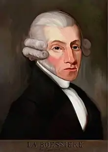 In 1747, when Georges Bologne was accused of murder, he fled to France. The next year he was visited by his wife, Nanon, and his son. After two years he was granted a royal pardon and returned to Guadeloupe.[16] In August 1753, Joseph aged seven, was taken to France for his education, and installed in a Jesuit boarding school in Angoulême so his uncle Pierre could keep an eye on him. The couple accompanied by Nanon returned to Guadeloupe.[17] Two years later, on 26 August 1755, listed as passengers on the ship L'Aimable Rose,[18] Bologne de Saint-Georges and only Nanon landed in Bordeaux.[19] Reunited with their son Joseph, they moved into a spacious apartment in the 6th Arrondissement (Rive Gauche).[20][21]