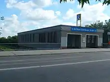 The planned name of the station was Kaulsdorf-Nordost. However, when it opened the station's name was Heinz-Hoffmann-Straße (named after Heinz Hoffmann, general of the GDR army). In 1991 it got the name Grottkauer Straße, then in 1996 it got the new name Neue Grottkauer Straße.[2] In 2016, the station was renamed again into Kienberg (Gärten der Welt) due to the international horticultural exhibition Internationale Gartenausstellung 2017 (IGA 2017).