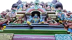 Once, the architects of Devaloka, Vishvakarma and Mayan had an argument on whose skill was superior. Brahma, the god of creation informed Mayan that Vishvakarma attained betterment as he built Vaikuntha, the abode of Vishnu on account of accomplishments in a previous birth. He also informed Mayan that to attain similar status, he has to identify and build an abode near the river Kaveri similar to Vaikuntha. Mayan inspected various places and finally identified Thiruvelliyangudi, where sage Markendeya was doing penance. He built a beautiful temple and its compound, which is believed to be the temple in modern times. Vishnu appeared as Sringara Sundaran (beautiful deity).[4][5]