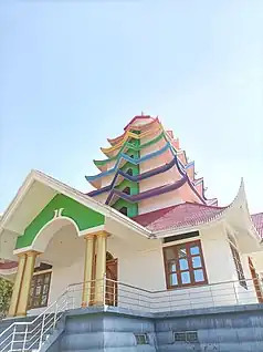 The Meitei: Lainingthou Sanamahi Kiyong, lit.'Lainingthou Sanamahi Shrine'), officially known as the Meitei: Laiyingthou Sanamahi Kiyong, lit.'Laiyingthou Sanamahi Shrine')[lower-alpha 1], is a temple of God Lainingthou Sanamahi of Meitei religion (Sanamahism), built on the Nongmaiching mountain (Selloi Langmai mountain) in the Imphal East district of Kangleipak (Meitei for 'Manipur'). It is a center of the Sanamahism followers in Manipur.[3][2] It is the central body of the "Sanamahi Lainingkol" (University of Sanamahi Culture) at Chingoi Maru Langmaiching (Nongmaiching).[4][5][6]