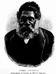 An Aboriginal man, Tommy Governor—the father of Jimmy Governor—found some interesting rocks, near what would become Mount Stewart, and showed these to Mr. George Stewart. The rocks were lead carbonate and assays showed the presence of silver. Governor was later to complain that he had not received what he thought was fair compensation for his discovery.[6][7][8]