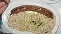 Butifarra amb mongetes Catalonia bean dish a dish consisting of a cooked botifarra and dry beans.