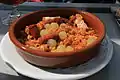 Fideuà or Fideuada Valencian Community noodle dish a noodle dish with a similar recipe to paella, usually made with seafood and fish, and optionally served with alioli sauce (garlic and olive oil sauce).