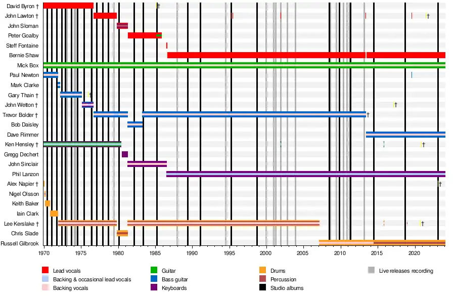 John Lawton 1976–1979 (plus live substitute in 1995 and 2013; live guest in 2001 and 2019) (died 2021)[6][7][32][25][33][23]