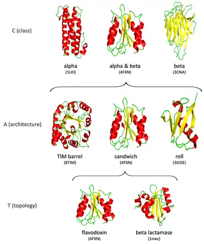 Schematic representation of structural classes of protein according to the CATH classification scheme.[1]