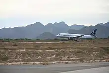 Los Cabos International Airport is situated 10 kilometres (6.2 mi) north of San José del Cabo, Baja California Sur, at an elevation of 114 metres (374 ft) above mean sea level. The airport features a single runway, designated as 16/34, measuring 3,000 metres (9,800 ft) with an asphalt surface. The commercial aviation apron accommodates 22 narrow-body aircraft. Nonetheless, the airport is capable of receiving wide-body aircraft. For general aviation, there is a dedicated apron with stands for fixed-wing aircraft and heliports for private aviation.