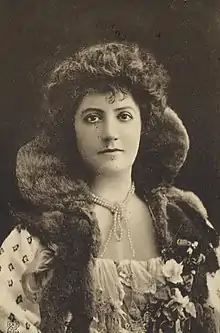 - ↑ Sources vary on her birth place: New York,[1][2] or San Francisco.[3][4] Her birthplace is recorded as California in the 1870 and 1880 censuses.[5][6] Her marriage certificate states San Francisco as place of birth.[7] Once source gives her birth date as January 7, 1872,[8] but she was counted in the 1870 census as 2 years old.[5]