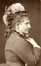 Thompson returned to New York following the death of Henderson in 1886 and again in the winter seasons of 1888 and 1891.[2] In 1887 she opened at the Royal Strand Theatre, London, under her own management, in Alfred Cellier's comic opera, The Sultan of Mocha.[2] She next starred in the French vaudeville-opérette Babette (1888, Antonio), but her voice was judged inadequate.[1] After this, her career began to decline. Her last American performances were in 1894 in The Crust of Society in a supporting role.[2] Back in London, George Edwardes cast her briefly in the Edwardian musical comedy An Artist's Model (1895), but by 1899, she had depleted her funds. A London benefit night was held for her on 2 May 1899 at the Lyceum Theatre, when she performed in The Wedding March by W. S. Gilbert. She also recited a rhymed "farewell address" written for her by Gilbert.[16] Her final performances were in 1904, as the Duchesse du Albuquerque in A Queen's Romance.[17]
