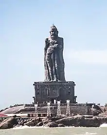 During his political career, Karunanidhi advocated for increased state autonomy and affirmative action to favour lower castes.[12] He implemented a caste-based quota system for government employment and government school students, as well as subsidies to the poor. His initiatives were quickly adopted in other Indian states. His initiatives earned him popularity among the lower castes.[9] He was frequently confronted with accusations of nepotism.[13] He has also stirred controversies by publicly supporting the LTTE and other separatist groups in Sri Lanka.[21] During his different tenures, he implemented a number of initiatives aimed at promoting the expansion of industry in the state.[11] He was also instrumental in erecting a 133-foot monument of Thiruvalluvar in Kanyakumari[11] and ensuring classical language status to Tamil language.[22]
