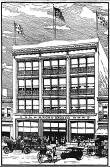 In September 1882 Rich's moved to 54-56 Whitehall[2] and in 1906, the adjacent M. Kutz & Co. building at 52 Whitehall was acquired. Both it and the Rich store at 54-56 Whitehall were torn down. Rich's closed its furniture annex and moved its dry goods to that building temporarily, while a new building was built on the site of 52-54-56 Whitehall designed by noted local architectural firm Bruce & Morgan.[3] In April 1907 the new emporium opened for business.[4]
