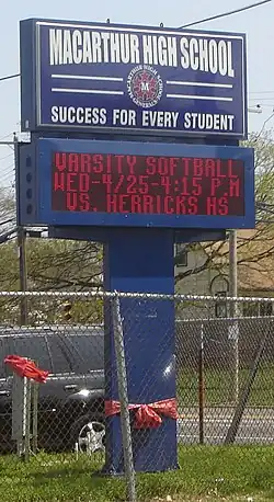 MacArthur High School is a public high school located in Levittown, New York. One of two high schools in the Levittown Union Free School District, the school is named after United States General Douglas MacArthur.