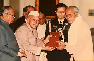 He was conferred the Tamra Patra award by former President of India, Shankar Dayal Sharma in recognition of his literary work in Hindi.