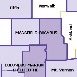 The Mansfield–Ashland–Bucyrus, OH Combined Statistical Area is a CSA in the U.S. state of Ohio, as defined by the United States Census Bureau. It consists of the Mansfield Metropolitan Statistical Area (Richland County); and the BucyrusGalion Micropolitan Statistical Area (Crawford County), and, since 2020, the Ashland Micropolitan Statistical Area (Ashland County).[1] As of the 2020 Census, the CSA had a population of 219,408.[2]