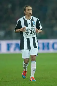 In January 2013, she was named one of the six Ambassadors of the 2014 FIFA World Cup in Brazil, alongside Amarildo, Bebeto, Carlos Alberto Torres, Ronaldo and Mario Zagallo.[11] She also appeared in the Sveriges Television television documentary series The Other Sport from 2013. In August 2016, Marta was one of the eight to carry the Olympic Flag in the Olympic Games in Rio de Janeiro. She was appointed by the Secretary-General of the United Nations as a Sustainable Development Goals advocate.