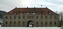 At the entrance to the Flossenbürg Concentration Camp Memorial