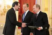 Sanaei presenting his lettre de créance to Vladimir Putin, 16 January 2014