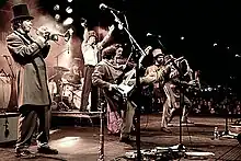 Although a leader of the Quebec "neo-traditional" scene, the band takes a definitely modern slant on that style, borrowing stories and characters from French Canadian folklore (the devil, the chasse-galerie, the shepherdess, the coureur des bois, drinking songs, etc.) to write about modern themes with a touch of humor. These themes include globalization (Qui nous mène?), politics (Ça va mal), criticism and mockery of the Quiet Revolution (Dégénérations/Le reel du fossé), over-medicating (Remède miracle), the frenetic pace of modern life (Train de vie/le surcheval, Continuer pareil), recent Quebec history (2096 (chanson à boire)), etc. Some of their songs involve personalities from Quebec history such as "La Corriveau" (La Corrida de la Corriveau), "The Great Antonio" (Antonio) and "Alexis le Trotteur" (Train de vie/le surcheval). The band also wrote humorous songs about Québécois cultural phenomena such as poutine (Hommage en grain).