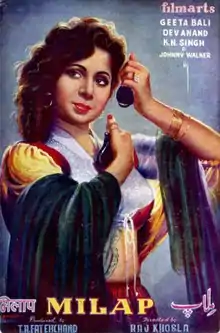 Milap (lit. 'The Union') is a 1955 Indian Hindi-language comedy drama film directed by Raj Khosla.[1] The film featured Dev Anand and Geeta Bali in the lead roles.[2]