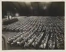 Servicemen of the 20th Air Force stationed in Guam during World War II participate in a Rosh Hashanah service.