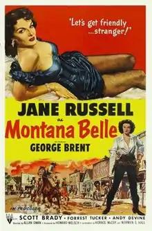 Montana Belle is a 1952 American Trucolor Western film directed by Allan Dwan and starring Jane Russell. It is one of several fictionalized movies about outlaw Belle Starr. The story is set in Oklahoma, where the real Starr was killed. The word "Montana" in the title refers to the part of the plot in which Starr, wanted by the law, alters her appearance, poses as a widow from Montana and becomes a saloon singer.