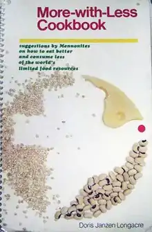 The More-with-Less Cookbook is a cookbook commissioned by Mennonite Central Committee in 1976 with the goal of "helping Christians respond in a caring-sharing way in a world with limited food resources"[1] and "to challenge North Americans to consume less so others could eat enough".[2] The first edition of the book has received forty-seven printings, with over 847,000 copies sold worldwide, including Bantam Press, British English and German editions.[3]
