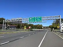 Over the years, several traffic circles have been modified or replaced along Route 73. The Marlton Circle at Route 70 in Marlton was modified in 1974 to allow Route 73 to run directly straight through the circle. This circle became known for traffic backups and was replaced with an interchange.[16] Construction on this interchange, which cost $31 million, began in April 2009.[7] In May 2010, the circle was eliminated with a temporary at-grade intersection constructed while the Route 73 bridge over Route 70 was being built.[17] The interchange was completed in June 2011.[5] A traffic circle that existed at the intersection of Route 38 and Route 41 in Maple Shade Township was removed by the 1960s and replaced by the current set of interchanges.[18][19] In addition, the Berlin Circle in Berlin was replaced by an at-grade intersection between August 2005 and September 2006 at a cost of $73 million.[20]