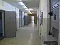 The main prison also included a hospital wing, built in the 1950s and expanded in 1972. The hospital treated prisoners from all three Berlin prisons and sometimes from regional Stasi prisons as well. The hospital had up to 28 beds (in cells), an X-ray ward, treatment, operating rooms, a morgue, and outdoor exercise cells (called "tiger cages" by prisoners). In 1989, shortly before its closure, the hospital was run by Dr. Herbert Vogel with 28 full-time Stasi staff.[6]