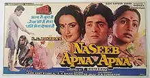 Naseeb Apna Apna (transl. To each their own fate) is a 1986 Indian Hindi-language drama film starring Rishi Kapoor, Farah Naaz and Radhika.[1] It is a remake of the 1982 Tamil film Gopurangal Saivathillai.[2]