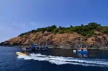 Netrani (historically known as Bajrangi Island, Pigeon Island and also Heart Shaped Island)[1] is a small island of India located in the Arabian Sea. It is off the coast of Karnataka situated approximately 10 nautical miles (19 km) from the temple town of Murudeshwara in Bhatkal Taluka. The island can be seen from the mainland over 15 km (9.3 miles) away. Views above give this island the appearance of being heart-shaped. Its animal inhabitants include wild goats and pigeons. It has scuba diving facilities and is easily accessible from Bhatkal, Mangalore, Goa, Mumbai or Bangalore. There are dive shops at Murdeshwara and Goa which regularly organize trips to the island.[2] It is known locally as Nitra Gudo. The famous Hindu temple Jai Bajrangbali Temple is located here.