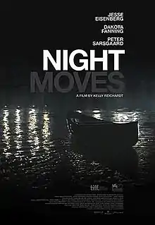 Night Moves is a 2013 American drama thriller film directed by Kelly Reichardt and written by Reichardt and Jonathan Raymond, starring Jesse Eisenberg, Dakota Fanning, Peter Sarsgaard, Alia Shawkat, and James LeGros. The film follows three radical environmentalists who plot to blow up a dam. It was shown in the main competition section of the 70th Venice International Film Festival,[3][4] at the 2013 Toronto International Film Festival[5] and at 2013 Deauville American Film Festival, where it won Grand Prix of the festival.[6]