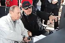 Mikhalkov has been a strong supporter of Russian president Vladimir Putin. In October 2007, Mikhalkov, who produced a television program for Putin's 55th birthday, co-signed an open letter asking Putin not to step down after the expiry of his term in office.[14]