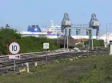 The Port of Immingham is the UK's largest port by tonnage, handling around 46 million tonnes per year.[10] It has DFDS freight routes to Brevik, Cuxhaven, Esbjerg, Gothenburg, Rotterdam and Zeebrugge.[11] The Port of Grimsby is a major car importation hub, along with being an offshore wind farm servicing hub.