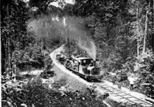 Since the 18th century, tobacco was North Borneo's foremost planting industry.[70] The logging history in North Borneo can be traced since the 1870s.[71] From 1890s, hardwood exports increased,[72] with logging expanding especially during the interwar period.[40] In the 1900s, North Borneo joined the rubber boom. The completion of North Borneo Railway Line helped to transport the resources to a major port on the west coast. By 1915, around 34,828 acres (14,094 ha) of land, in addition to Chinese and North Borneo smallholdings, had been planted with rubber tree.[69] In the same year, North Borneo Governor Aylmer Cavendish Pearson invited Japanese emigrants to participate in the economic activities there. The Japanese government received the request warmly and send researchers to discover potential economic opportunities.[73]