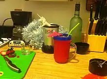 The Magic Bullet is a compact blender sold by Homeland Housewares, a division of the American company Alchemy Worldwide, and sold in over 50 countries.[1] It is widely marketed through television advertisements and infomercials and sold in retail stores under the "As seen on TV" banner. A feature-limited retail version not under this banner called the "Magic Bullet Single Shot+" is also available.