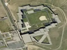 The "yard" is fully within the walls of the prison, and armed officers patrol the top of the walls whenever prisoners are out. Outside of the prison building is a field surrounded by a double set of fences topped with razor wire. No prisoner has ever escaped.
