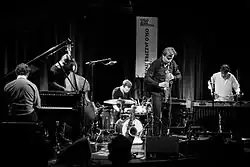 The Oslo Jazz Festival Orchestra 2016 at Victoria Teater. At stage, Mathias Eick (trumpet), Trygve Seim (saxophone), Jon Balke (piano), Ellen Andrea Wang (double bass) and Gard Nilssen (drums).