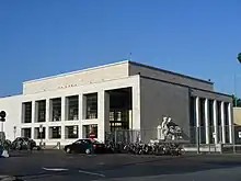 The palace was designed by the Gruppo Toscano of architects led by Giovanni Michelucci and the interior was decorated using various color marbles by Italo Gamberini and Pier Niccolò Berardi.[1]