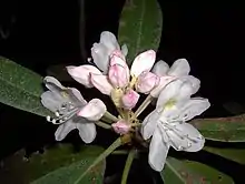 Paris Mountain State Park is home to around 73 different types of flora. The majority of the plant life on Paris Mountain is similar to plant life found on mountains farther north. Virginia Pine populates the highest elevations of the mountain.[16] While the plant life resembles that of the mountains to the north, there are exceptions. Holly is evident on many parts of the mountain, even though the plant is not native to the region. Another plant covering the mountain in the springtime is arbutus. A special type of honeysuckle is also found on the mountain. This unusual honeysuckle was first discovered by Governor John Drayton.[5] Rosebay rhododendron also grows on banks along the park's rivers.[16]