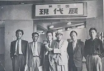 The Association became one of the leading forces challenging the institutional control that the Ministry of Culture and Public Information-organized National Art Exhibition (Daehan minguk misul chollamhoe—known as Kukjeon for short) had over the Korean art world. Park won prizes at the 1954 and 1955 iterations of the Kukjeon. However, Park claimed that by 1956 he had identified elements of "corrupt anti-modernity" and "feudalism" at the Kukjeon.[6] As a result, he and artists Kim Chung-seon, Mun Wu-sik, and Kim Young-hwan hung a poster with a manifesto condemning the Kukjeon at the entrance of their exhibition held in a gallery at the Dongbang Munhwa Building in May 1956. Park asserts that this marked the beginning of the collective stand avant-garde artist took against the national exhibition.[7]