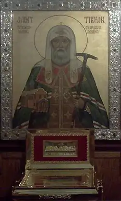 - ↑ Shevkunov, Tikhon (2012). "The Relics of Patriarch Tikhon". Everyday Saints and Other Stories (2nd ed.). Pokrov Publications.