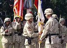 After completing his initial training, Mikolashek's first assignment was in West Germany as a platoon leader and assistant operations and training officer (Assistant S3) with the 1st Armored Division.[1] He is a master parachutist and during his career Mikolashek completed over 70 jumps.[1] He served as commander of Headquarters and Headquarters Company, 327th Infantry, before assignment to 1st Battalion, 12th Cavalry Regiment during the Vietnam War.[9] Mikolashek later served with Military Assistance Command, Vietnam Team 73, and his Vietnam experience included defense of a fire base north of Biên Hòa and combat missions in the Mekong Delta.[1][9]