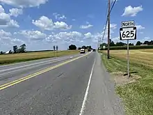 PA 625 northbound past its southern terminus at PA 23 in East Earl Township