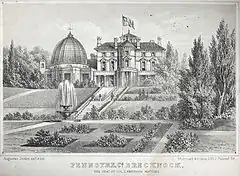 Penoyre House, Battle, Powys, Wales is a nineteenth century country house. Designed by Anthony Salvin for Colonel John Lloyd Vaughan Watkins, it was built between 1846-8. In an Italianate style, it is described by Mark Girouard as "Salvin's most ambitious classical house".[1] The enormous cost of the house almost bankrupted the family and it was sold only 3 years after Colonel Watkins's death. From 1947, the house was in institutional use, and was converted to apartments in the early twenty-first century. The building is Grade II* listed[2] The gardens are listed Grade II on the Cadw/ICOMOS Register of Parks and Gardens of Special Historic Interest in Wales.[3]